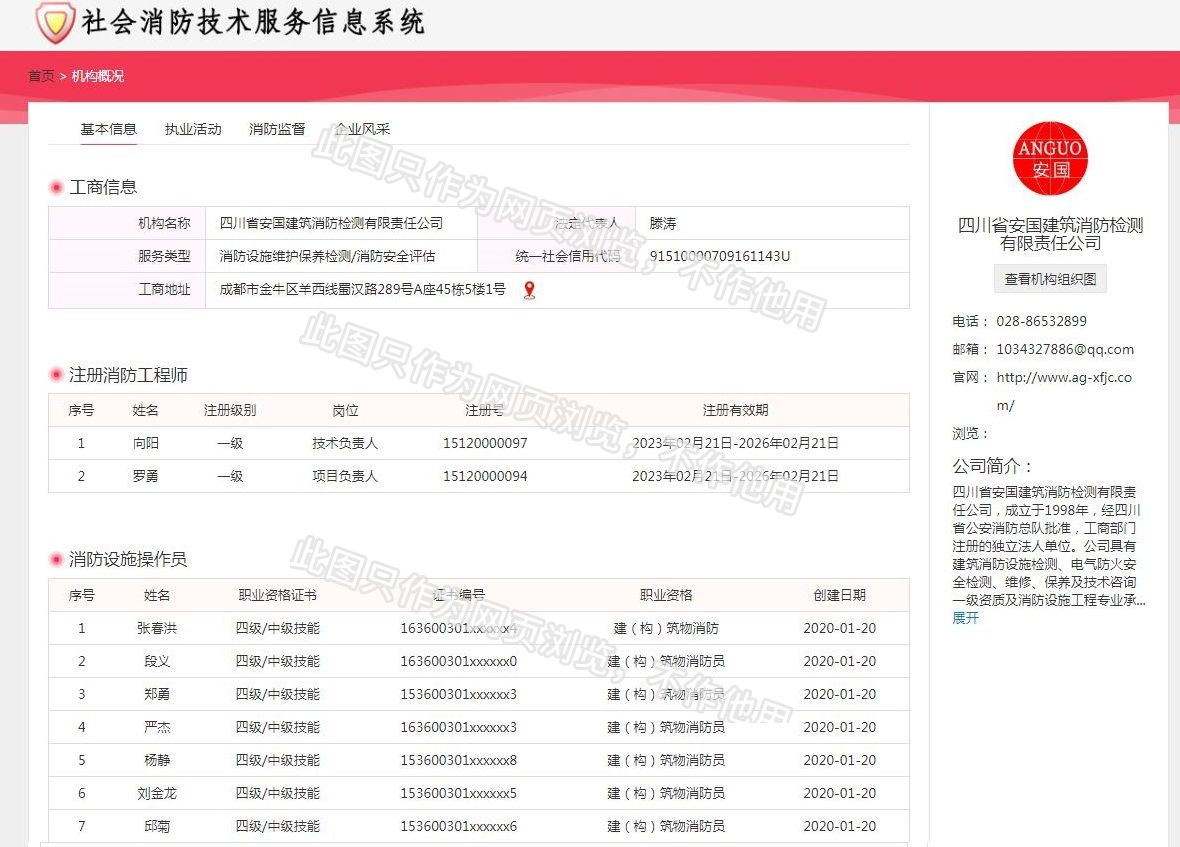 四川省安國建筑消防檢測(cè)有限責(zé)任公司,成立于1998年,經(jīng)四川省公安消防總隊(duì)批準(zhǔn),工商部門注冊(cè)的獨(dú)立法人單位。